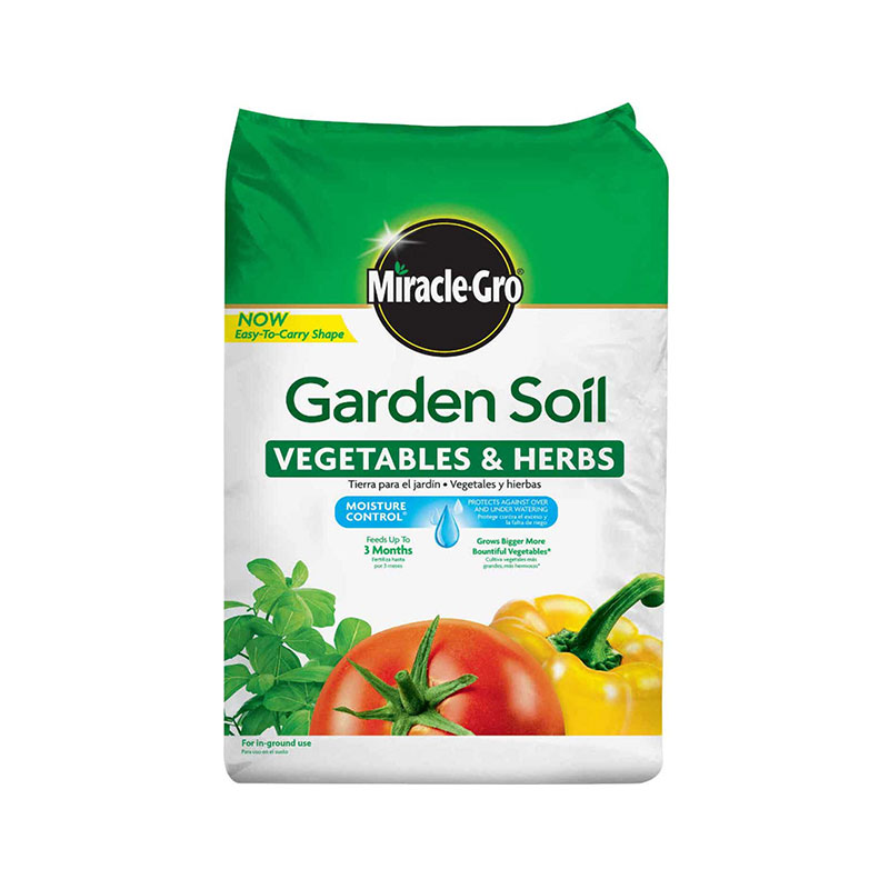 Garden soil ideal for vegetables and herbs. Features Moisture Control to protect against over or under watering. Produces bountiful vegetables and herbs with a blend of essential nutrients. Blended with compost to feed plants for up to 3 months. For in-ground use only.