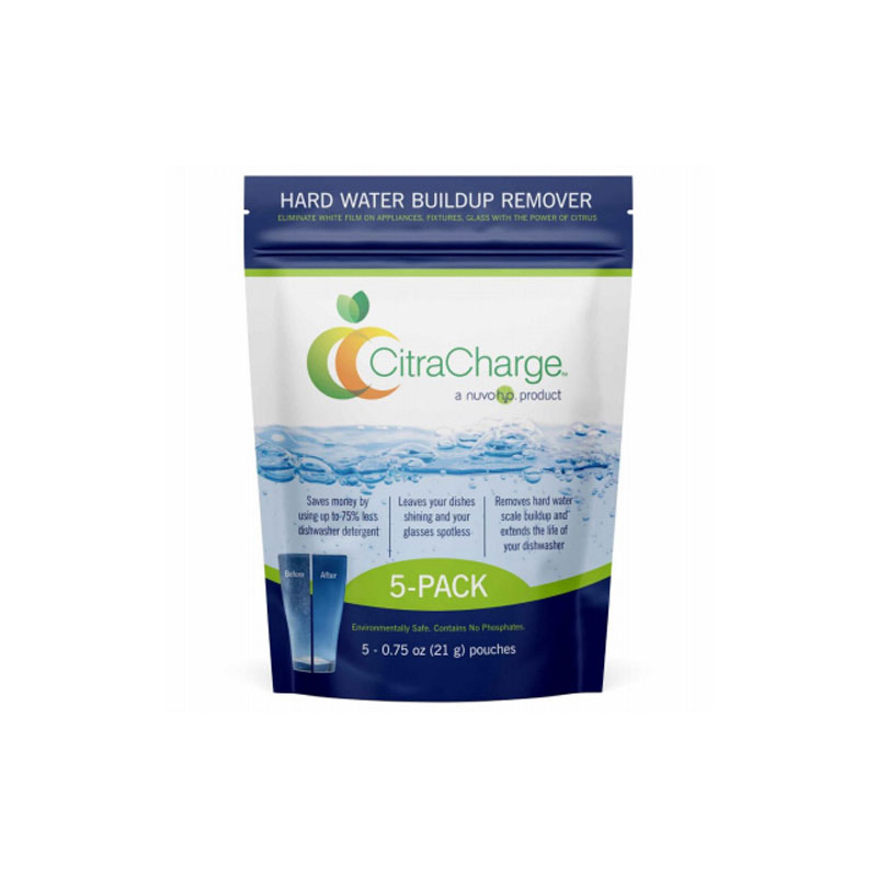 Experience the amazing power of our eco-friendly Citra Charge multi-use cleaning packs. With this 5-pack of pouches you can have everything from shiny dishes to hardwater-free shower doors. The pouches can be thrown in your utensil bin and will last 3-5 washes removing any existing scale build-up and keeping those dishes spot free. The Citra Charge solution can be combined with water to create a hard water scale remover to be used for removing scale from faucets, shower heads, or shower doors.