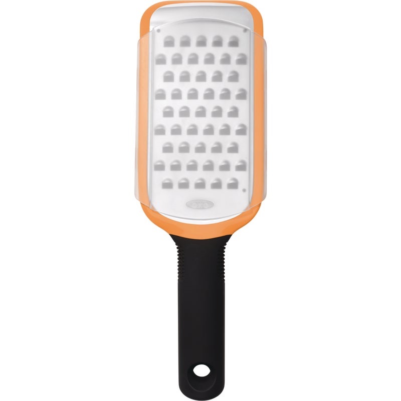 The OXO Good Grips Etched Coarse Grater has an extra-sharp, etched stainless steel grating surface that cuts through semi-soft cheeses, apples and cabbages with ease.