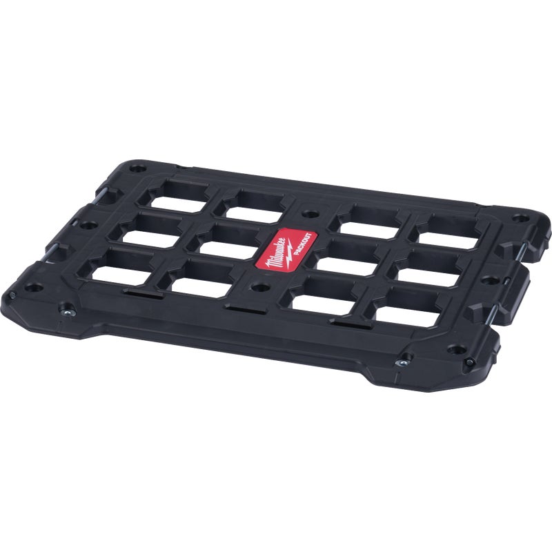 The PACKOUT modular storage system is the industry’s most durable and versatile storage system. The PACKOUT mounting plate is constructed with impact-resistant polymers, up to 100 Lb. weight capacity when mounted to the floor and 50 Lb. when mounted to walls. Metal-reinforced mounting holes allow the mounting plate to be securely fastened to most surfaces, while metal-reinforced tie-down points help secure job site supplies to the mounting plate. 16 In. hole spacing for easy mounting to studs. Impact-resistant polymer construction. The PACKOUT modular storage system allows storage systems to be customized and built for easy transportation and organization of tools and accessories.