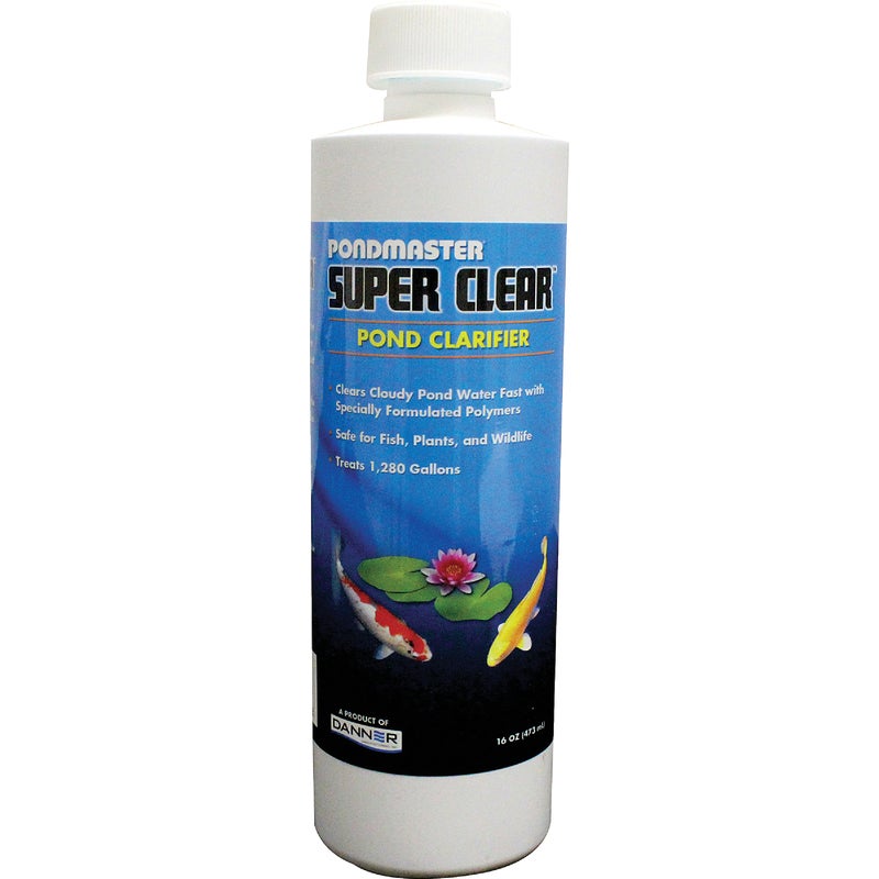 PondMaster Super Clear. Clears cloudy pond water fast with specially formulated polymers. Safe for fish, plants, and wildlife. Higher concentrate.