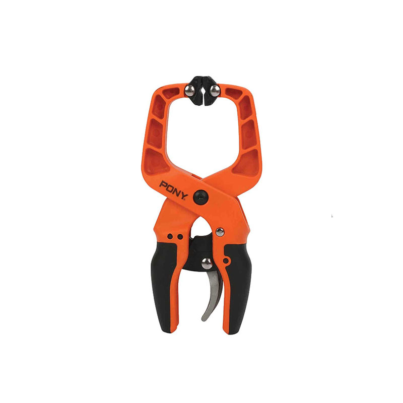 Pony hand clamps feature an innovative box-joint design that prevents twisting and keeps the jaws square and straight. A one-of-a-kind adjustment mechanism allows adjustment of clamping pressure to the desired needs without any additional tools. The soft pivoting jaw pads are ideal for holding delicate work and are riveted to the jaws to ensure they never come off. Soft handles are ergonomically designed for comfortable use.