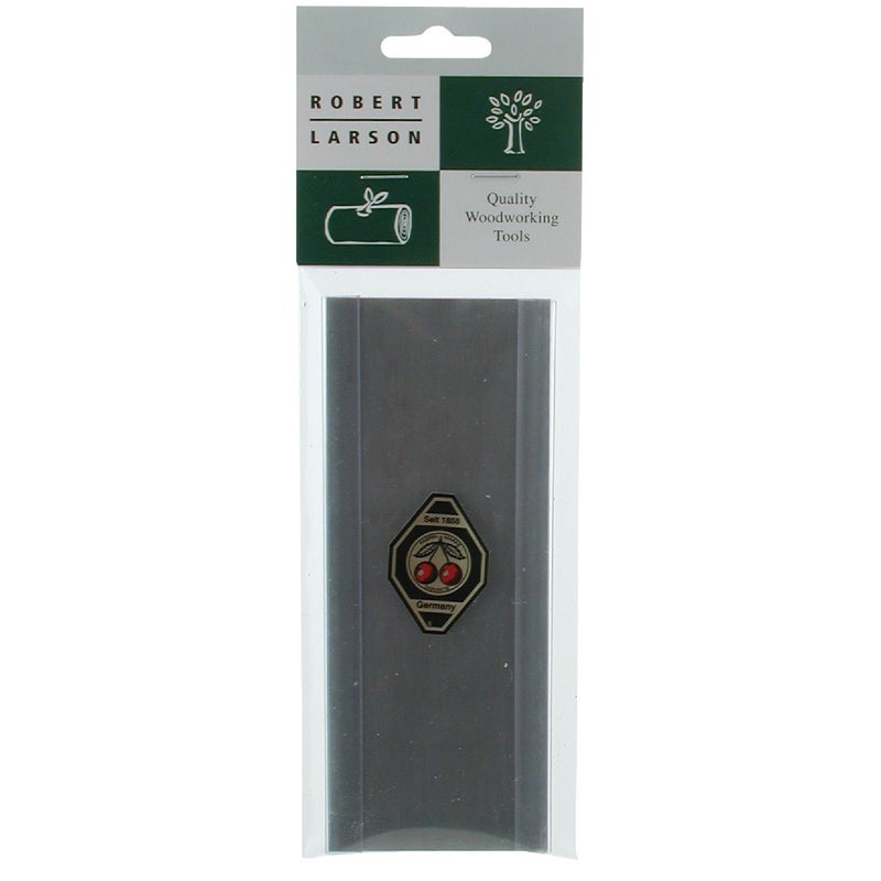 Robert Larson 5-7/8 In. x 2-3/8 In. Scraper With Prepared Edges. This Two Cherries scraper is specially prepared to let you get to work faster. The 2 long edges are square and have been worked so that they are smooth, without scratches that will end up showing on the wood surface. Saves filing time and stoning time – just grab your burnisher and turn the edge.