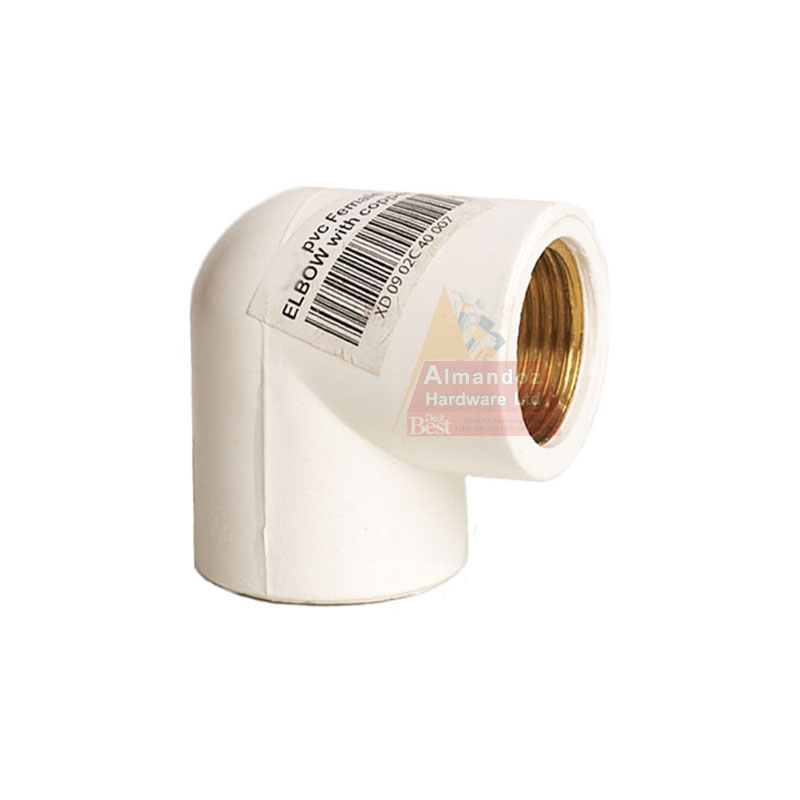 Designed to connects pipes and tubing to allow for a change in direction, this fitting is crafted from PVC material to ensure durability. Featuring an inner lining of brass, this fitting is lightweight, corrosion resistant and easy to install. It is suitable to use in residential and commercial piping systems.