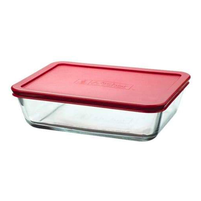 Rectangular Kitchen Storage Container with Red Plastic Lid, 11-Cup