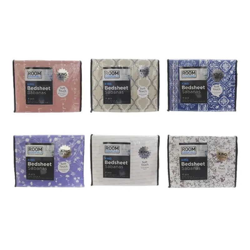 Feel the softness of the Room Essentials Bedsheet Set King Four Piece Set. This comfy and attractive bedsheet is made of microfiber, making it soft on your skin. Ideal for any bed in your home that requires a king-sized sheet.