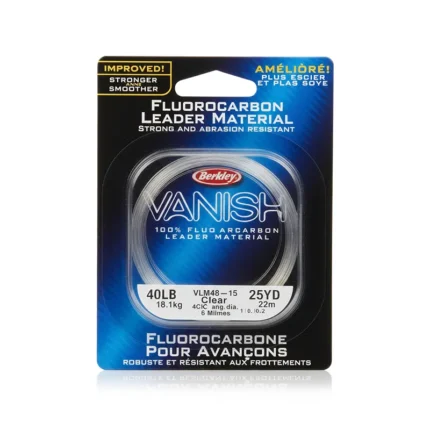 Berkley Vanish Fluorocarbon Leader Material is engineered for strength, invisibility, and reliability. It’s crafted with advanced fluorocarbon technology that delivers exceptional abrasion resistance and near-invisible presentation giving you the confidence to land even the most cautious fish.