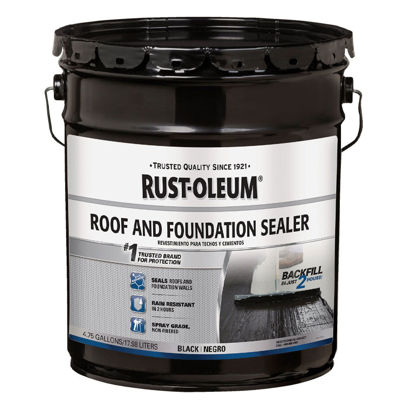 Rust-Oleum Roofing and Foundation Sealer is a non-fibered, spray-grade coating for roofs and foundation walls. This versatile formula can be used as a damp proofer on vertical surfaces to protect against moisture penetration in roofing or building applications. Rain resistant and can be coated or backfilled in only 2 hours and fully cured in 24 hours. Covers up to 50 square feet per gallon.