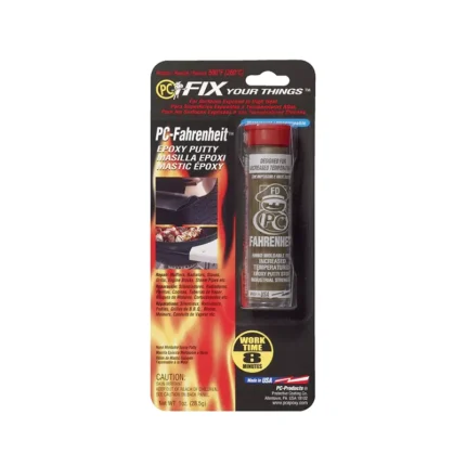 Hand-kneadable epoxy putty is especially designed for repairs that involve high temperatures. 8-minute working time and cures in 1 hour. Performs at temperatures of 200 °C. F. (93 °C.) to 350 °C. F. (176 °C.). Waterproof. Can be used to repair heating pipes, radiators, grills, woodburning stoves, engine blocks, castings, ovens, lawn mowers, tractors, electrical connections, etc. 1 oz.
