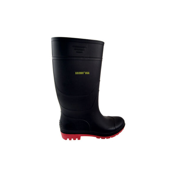 Black, PVC (polyvinyl chloride) boot. Ideal for wet and messy conditions.