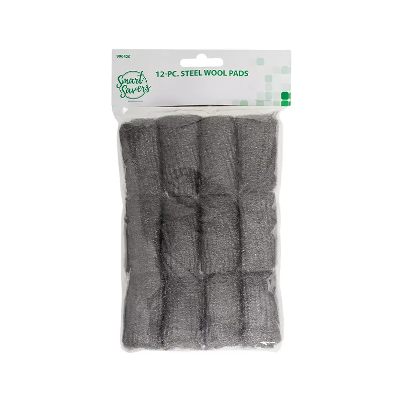 Introducing Smart Savers steel wool, grade #0! Each package contains 12 high-quality pieces, perfect for all your cleaning and scrubbing needs.
