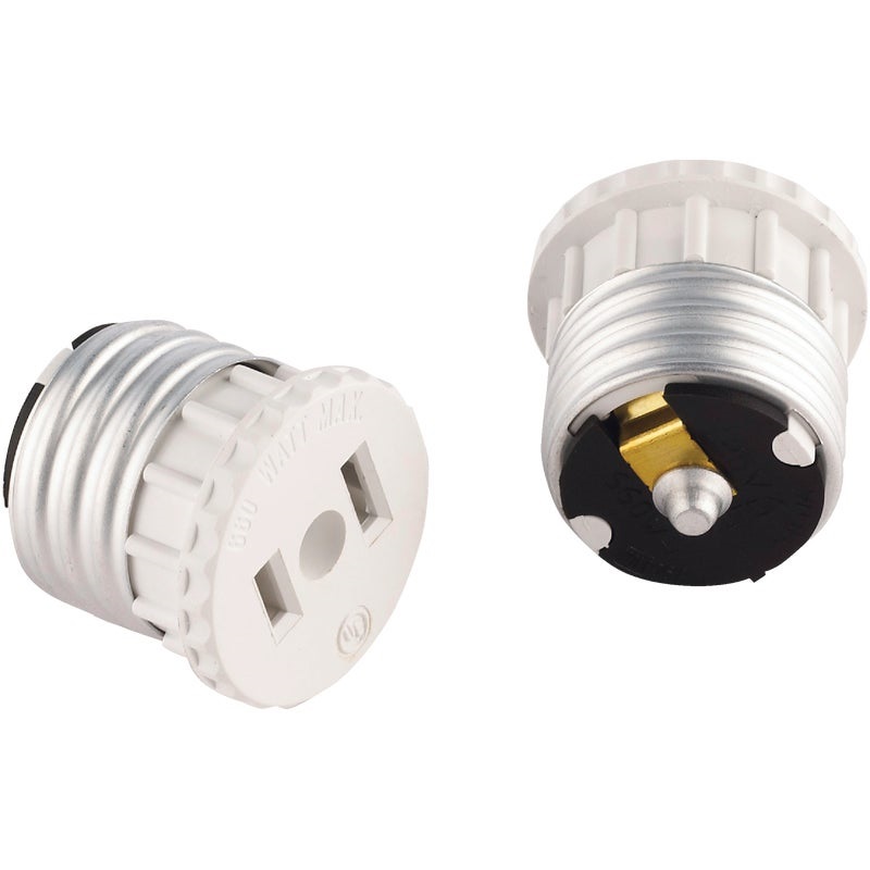 Converts any medium base lamp socket into a non-polarized, 2-prong outlet. NEMA 1-15R. 600W/120V. UL (Underwriter’s Laboratories) listed.