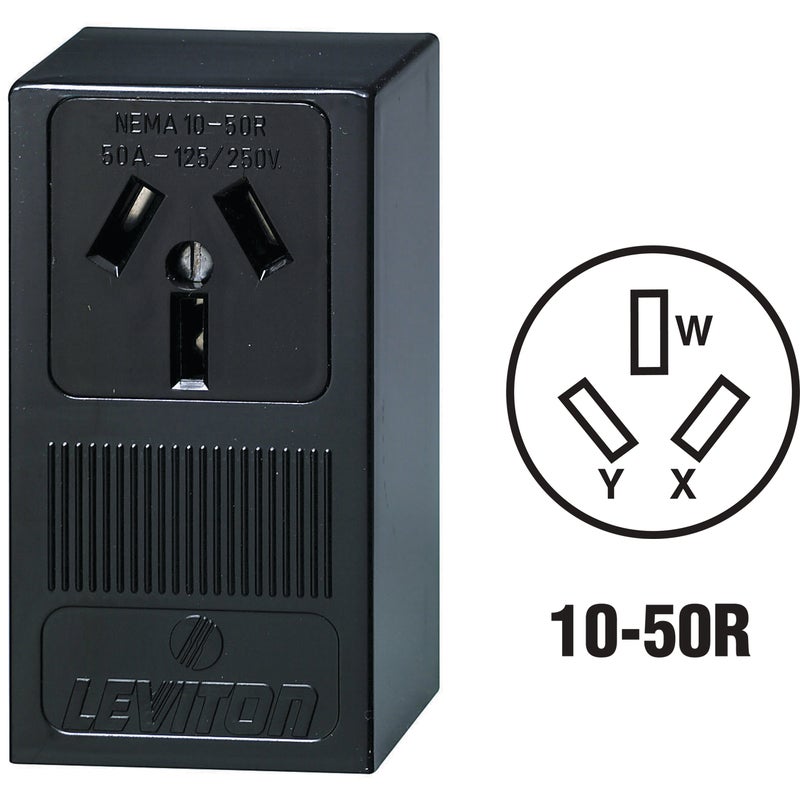Leviton 50A Surface Mount Black 10-50R Non-Grounding Range Power Outlet