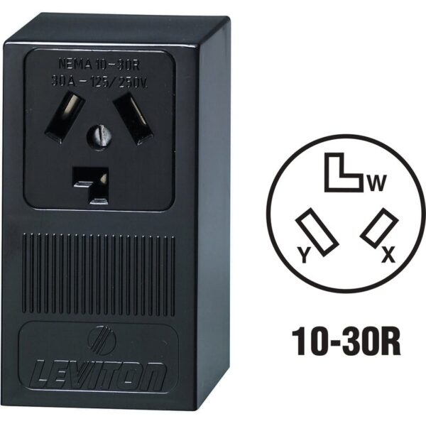 Leviton 30A Surface Mount Black 10-30R 3-Wire Dryer Power Outlet