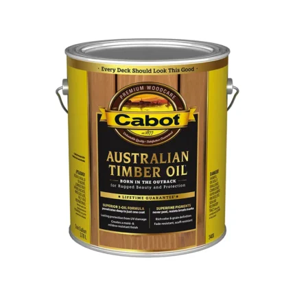 Cabot Australian Timber Oil penetrates even dense exotic hardwoods in just one coat. With superfine pigments that never peel and resist brush marks, you'll be able to enjoy a choice of 5 rich colors that won't fade or scuff for years to come.