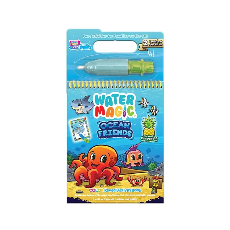 Water Magic is an activity book that is perfect for ages 3 and up. It features reusable pictures that magically appear when the brush is filled with water. The brush is scented to match the theme of the book and is mess and spill free.