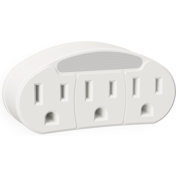 LED (light emitting diode) night light that converts 1 grounded outlet to 3 grounded outlets. Features auto dusk to dawn function for convenience. Provides warm white 3000-kelvin color temperature.