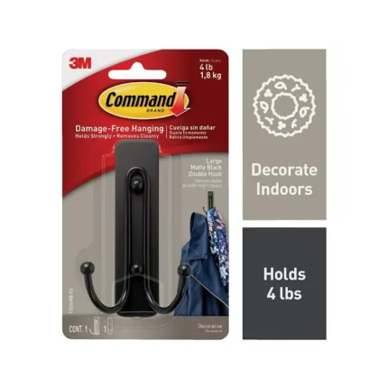 Command Large Decorative Matte Black Double Hook 1 Hook 1 Strip
