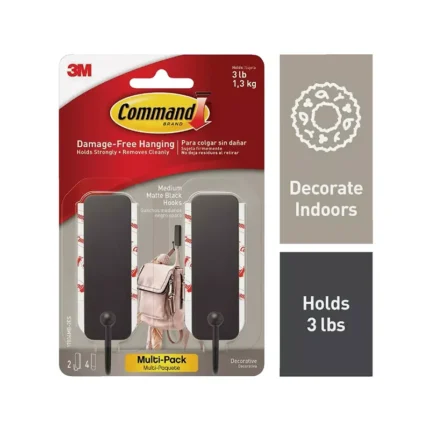 Command Medium Matte Black Decorative Hook 2 Hooks 4 Strips