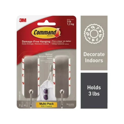 Command Medium Brushed Nickel Decorative Hook 2 Hooks 4 Strips