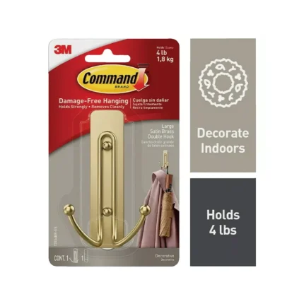 Command Large Decorative Double Hook Satin Brass 1 Hook 1 Strip