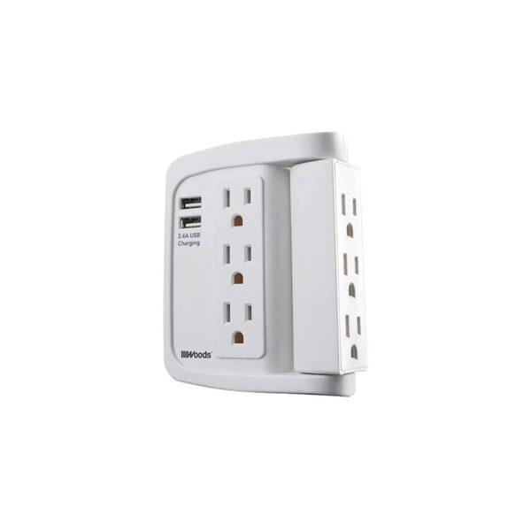 Woods 2-USB/6-Standard Outlet 2.4A/15A White Swivel Surge Tap