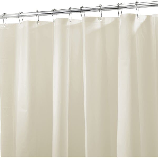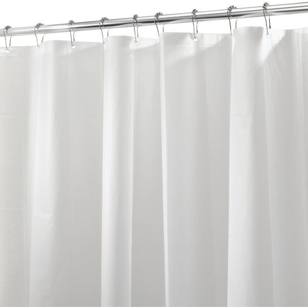 The dual-purpose white Shower Liner from InterDesign can be used as either a curtain or a liner. It is made from quick-drying 100% Polyester and has 12 reinforced button holes at the top along with a weighted bottom hem.