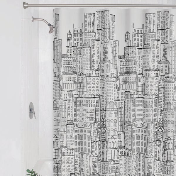 Zenith Zenna Home 70 In. x 72 In. White/Black PEVA Cityscape Shower Curtain Set