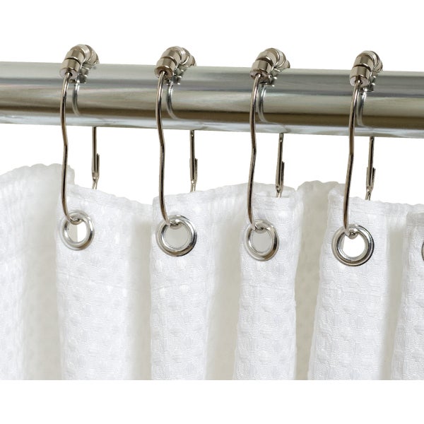 Durable metal shower curtain hooks have stylish and functional roller feature. 12 per box. Chrome finish.